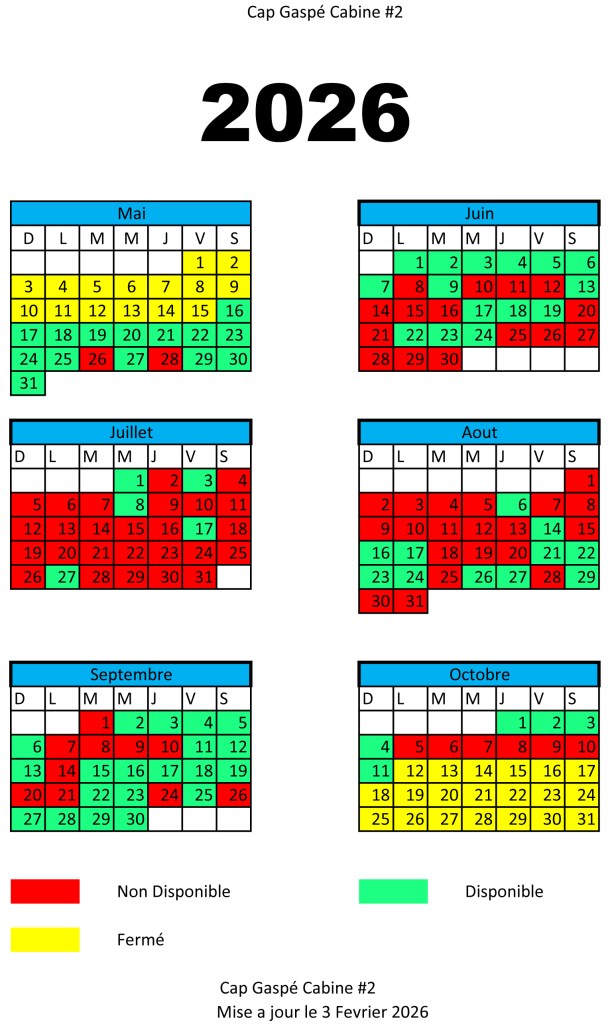 Pour réservation, communiquer avec nous par téléphone (418)892-5777