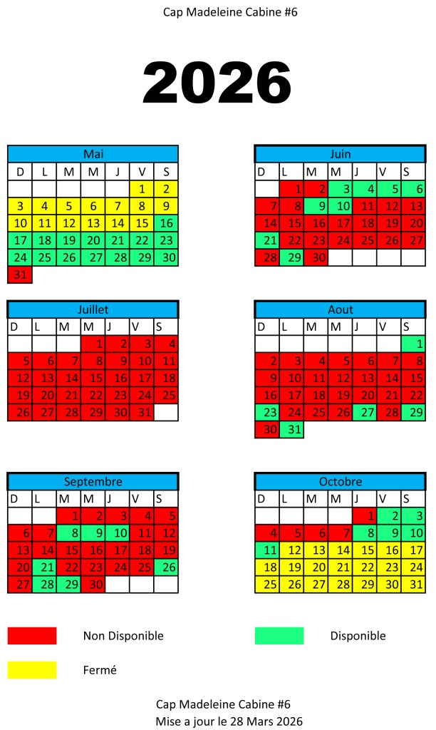 Pour réservation, communiquer avec nous par téléphone (418)892-5777